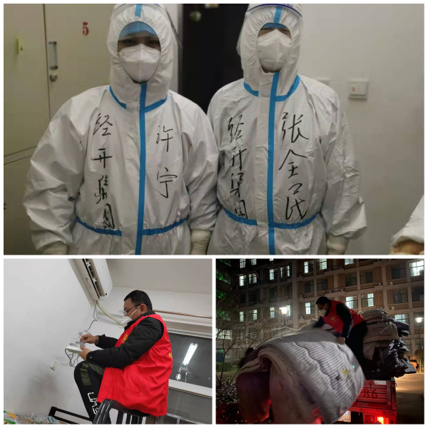 1月13日晝錦中學(xué)隔離點領(lǐng)取防疫物資、布置隔離房間