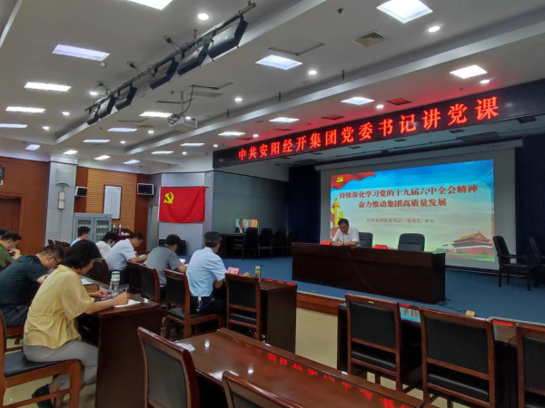 黨課開始前,全體黨員面對黨旗舉起右手,再次發(fā)出錚錚誓言,表達(dá)了為黨的事業(yè)奮斗終身的決心和愿望。隨后,齊方董事長從深入學(xué)習(xí)領(lǐng)會黨的十九屆六中全會的重大意義,全面把握全會精神的豐富內(nèi)涵與核心要義,號召全體干部職工積極響應(yīng)黨中央號召,自覺踐行初心使命,迎難而上、實干擔(dān)當(dāng),以史為鑒、開創(chuàng)未來,埋頭苦干、勇毅前行,奮力推動集團高質(zhì)量發(fā)展,建成“一個強市”、實現(xiàn)“八個領(lǐng)先”貢獻(xiàn)經(jīng)開力量。