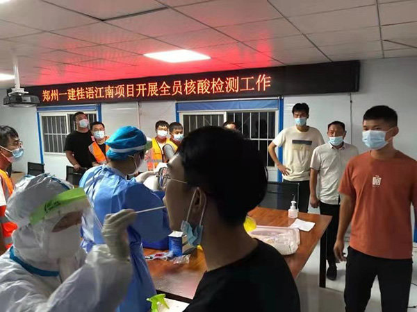8月7日,綠城項目部在縣防疫要求掃碼基礎上請安陽地區(qū)醫(yī)院對項目所有人員進行核酸檢測,包括項目部全體人員、一標段總包單位所有管理人員及工人、二標及三標段總包單位管理人員等近400人進行核酸檢測。