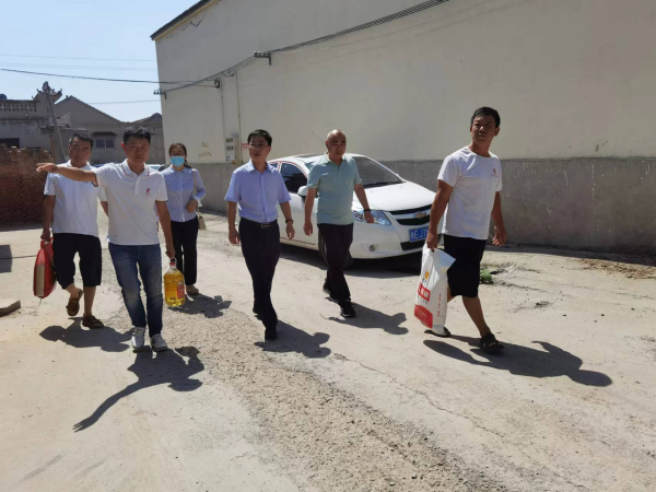 7月8日,經(jīng)開集團紀檢書記尚飛帶隊來到內(nèi)黃縣田達村看望慰問困難群眾,駐村第一書記柴毅及村兩委干部首先匯報了扶貧工作情況,隨后深入困難家庭進行走訪慰問,給扶貧對象送上面粉、大米、花生油等生活物資。