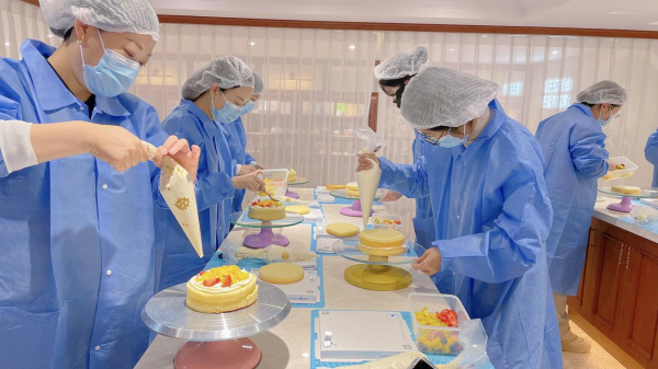 活動現(xiàn)場,集團邀請到經(jīng)驗豐富的專業(yè)烘焙老師,為大家細(xì)致講解了蛋糕制作的每一個步驟與技巧。女職工們興致勃勃地開啟蛋糕制作之旅,有的用水果擺出花朵造型,有的用奶油勾勒出可愛圖案,一個個造型獨特、色彩斑斕的蛋糕在她們手中誕生。女職工們相互交流經(jīng)驗,歡聲笑語回蕩在活動現(xiàn)場。