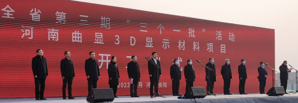 2022年1月4日上午,集團(tuán)副總經(jīng)理溫惠玲陪同市委副書記、市紀(jì)委書記黃明海,市政府副市長王新亭,市政府副市長、安陽縣委書記王紅兵以及河南投資集團(tuán)有限公司、市城鄉(xiāng)一體化示范區(qū)、東旭集團(tuán)、新石器公司等相關(guān)領(lǐng)導(dǎo)前往示范區(qū)參加我市“三個一批”項目開工儀式。在開工儀式活動現(xiàn)場,黃明海書記宣布全市第三期“三個一批”活動暨河南曲顯3D顯示材料項目開工。