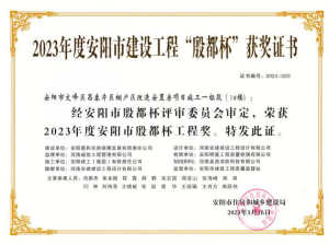 殷都杯”獎(jiǎng)是安陽(yáng)市住建局為提高我市建設(shè)工程質(zhì)量,促進(jìn)建設(shè)工程參建各方加強(qiáng)質(zhì)量管理所設(shè)置的獎(jiǎng)項(xiàng),是我市建設(shè)工程質(zhì)量最高榮譽(yù)獎(jiǎng)。2023年上半年,安陽(yáng)市住建局開展了本年度“殷都杯”獎(jiǎng)評(píng)選活動(dòng),通過復(fù)查審定,5月份對(duì)獲獎(jiǎng)的工程進(jìn)行了公示,并于上周正式下發(fā)相關(guān)榮譽(yù)證書。